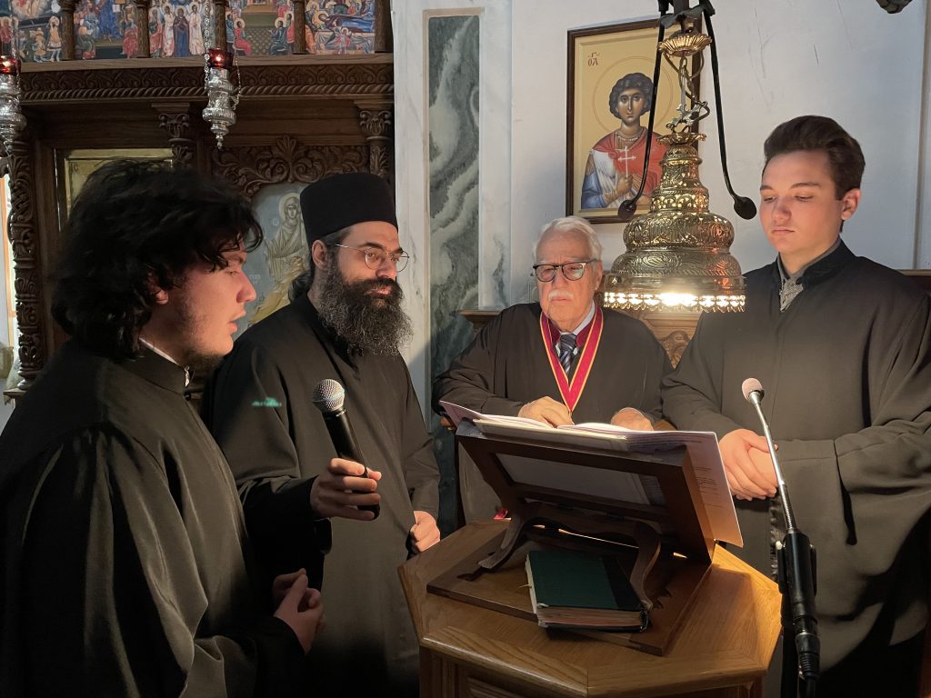 Τοὺς ὕμνους ἀπέδωσε ὁ ἄρχων Πρωτοψάλτης τῆς Μεγάλης τοῦ Χριστοῦ Ἐκκλησίας κ. Φώτιος Γιαννακάκης συνοδευόμενος ἀπὸ τὸν ἱεροψάλτη Κωνσταντῖνο Λέκκα καὶ ψάλτες τοῦ Μετοχίου.